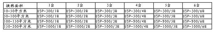 用戶使用單位可根據(jù)本單位在裝板式換熱器的數(shù)量,單臺(tái)板式換熱器的換熱面積,在根據(jù)下表,完成設(shè)備的選型。